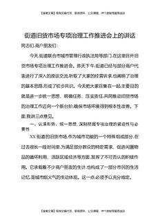 街道旧货市场专项治理工作推进会上的讲话.docx