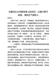 在廉洁从业专题党课上的讲话:以案示警守底线,清风正气育新人.docx