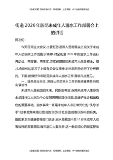 街道2026年防范未成年人溺水工作部署会上的讲话.docx