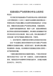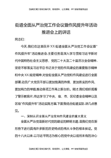 街道全面从严治党工作会议暨作风提升年活动推进会上的讲话.docx