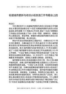 街道城市更新与老旧小区改造工作专题会上的讲话.docx