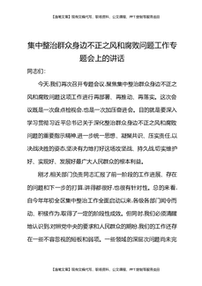 集中整治群众身边不正之风和腐败问题工作专题会上的讲话.docx