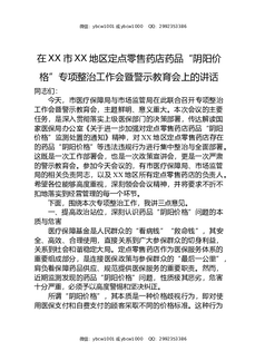 在XX市XX地区定点零售药店药品“阴阳价格”专项整治工作会暨警示教育会上的讲话.docx