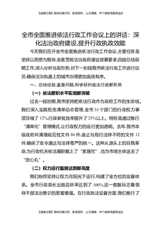 全市全面推进依法行政工作会议上的讲话:深化法治政府建设,提升行政执政效能.docx