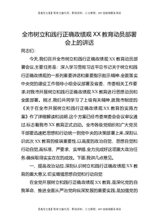 全市树立和践行正确政绩观XX教育动员部署会上的讲话.docx