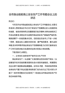 全市渔业船舶海上安全生产工作专题会议上的讲话.docx