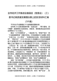 全市经济工作推进会暨县区(管委会)(工)委书记高质量发展擂台赛上的发言材料汇编(10篇).docx