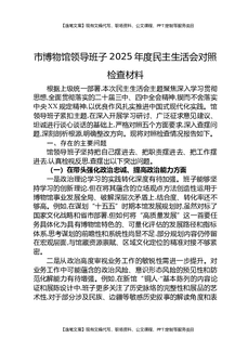 市博物馆领导班子2025年度民主生活会对照检查材料.docx