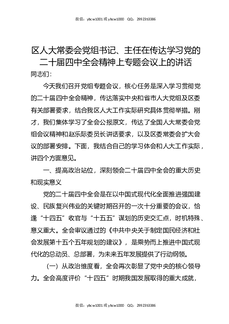区人大常委会党组书记、主任在传达学习党的二十届四中全会精神上专题会议上的讲话1.docx