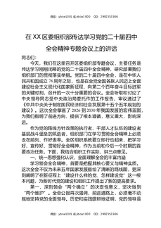 区委组织部传达学习党的二十届四中全会精神专题会议上的讲话.docx