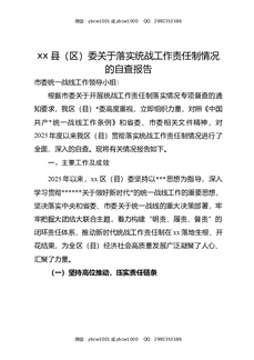 XX县(区)委关于落实统战工作责任制情况的自查报告.docx