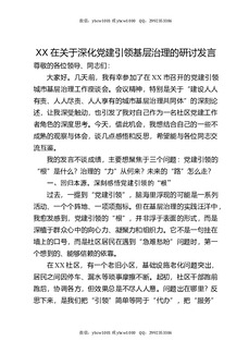 XX在关于深化党建引领基层治理的研讨发言.docx