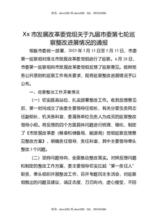 XX市发展改革委党组关于九届市委第七轮巡察整改进展情况的通报.docx
