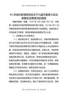 XX市城市管理局党组关于九届市委第七轮巡察整改进展情况的通报.docx