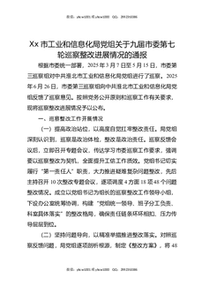 XX市工业和信息化局党组关于九届市委第七轮巡察整改进展情况的通报.docx