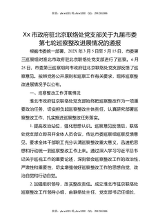 XX市政府驻北京联络处党支部关于九届市委第七轮巡察整改进展情况的通报.docx