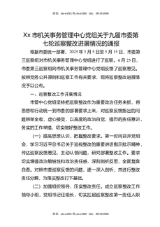 XX市机关事务管理中心党组关于九届市委第七轮巡察整改进展情况的通报.docx