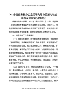 XX市督查考核办公室关于九届市委第七轮巡察整改进展情况的通报.docx