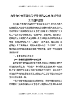 市委办公室直属机关党委书记2025年抓党建工作述职报告.docx