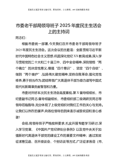市委老干部局领导班子2025年度民主生活会上的主持词.docx