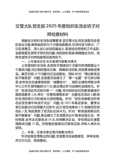 交警大队党支部2025年度组织生活会班子对照检查材料.docx