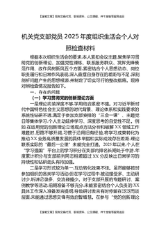机关党支部党员2025年度组织生活会个人对照检查材料.docx