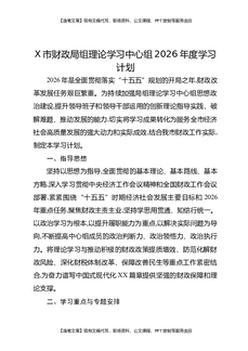X市财政局党组理论学习中心组2026年度学习计划.docx