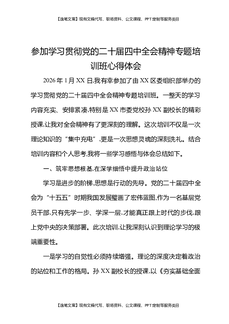 参加学习贯彻党的二十届四中全会精神专题培训班心得体会.docx