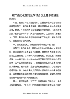 在市委办公室传达学习会议上的总结讲话.docx