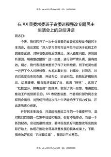 在XX县委常委班子省委巡视整改专题民主生活会上的总结讲话.docx