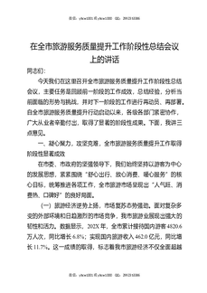在全市旅游服务质量提升工作阶段性总结会议上的讲话.docx