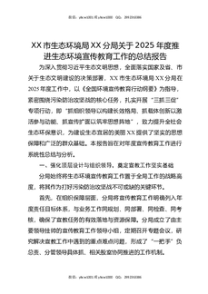 XX市生态环境局XX分局关于2025年度推进生态环境宣传教育工作的总结报告.docx