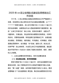 2025年XX区公安局队伍建设及思想政治工作总结.docx