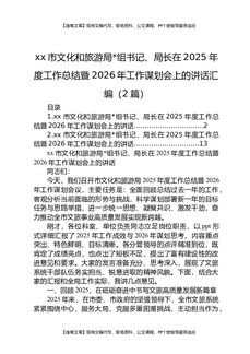 XX市文化和旅游局党组书记、局长在2025年度工作总结暨2026年工作谋划会上的讲话汇编(2篇).docx