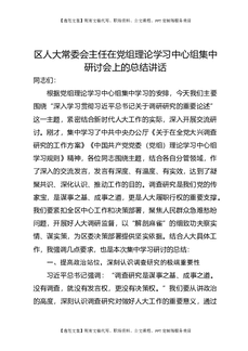 区人大常委会主任在党组理论学习中心组集中研讨会上的总结讲话.docx