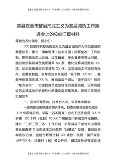 某县在全市整治形式主义为基层减负工作推进会上的总结汇报材料.docx