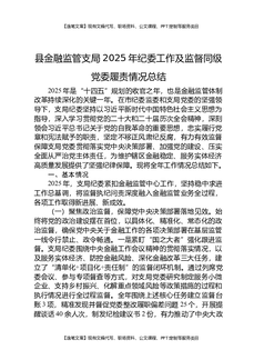 县金融监管支局2025年纪委工作及监督同级党委履责情况总结.docx