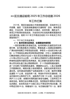 XX区交通运输局2025年工作总结暨2026年工作打算.docx
