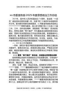 XX市委宣传部2025年度思想政治工作总结.docx