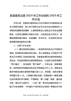 某县委政法委202X年工作总结和2025年工作计划.docx