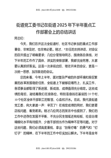 街道党工委书记在街道2025年下半年重点工作部署会上的总结讲话.docx