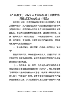 XX县委关于2025年上半年全县干部能力作风建设工作的总结(精品).docx