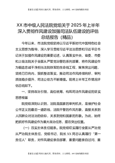 XX市中级人民法院党组关于2025年上半年深入贯彻作风建设加强司法队伍建设的评估总结报告(精品).docx