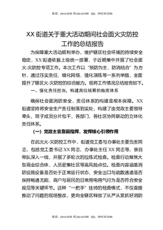 XX街道关于重大活动期间社会面火灾防控工作的总结报告.docx