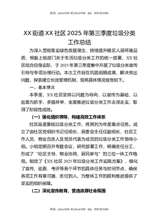 XX街道XX社区2025年第三季度垃圾分类工作总结.docx
