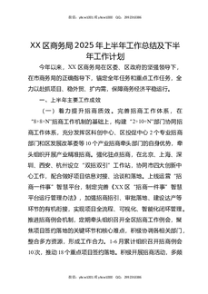 XX区商务局2025年上半年工作总结及下半年工作计划.docx