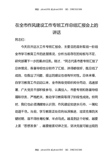 在全市作风建设工作专班工作总结汇报会上的讲话.docx