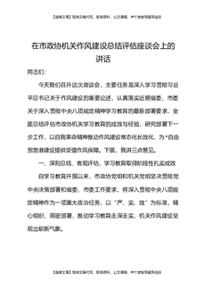 在市政协机关作风建设总结评估座谈会上的讲话.docx