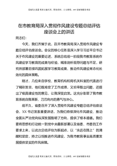 在市教育局深入贯彻作风建设专题总结评估座谈会上的讲话.docx