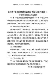 XX市XX区发展和改革局2025年三季度公平竞争审查工作总结.docx